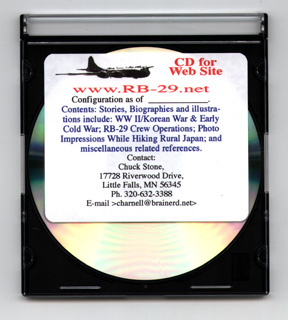 As described in our introductory information, this web site has evolved since its initial conception to encompass stories and related information from WW II, the Korean War and the early Cold War periods. My initial inspiration to begin this public service project was due to my feelings of lasting friendships and appreciation towards my own RB-29 crew members. Since then, our web site has expanded with the contributions of so many of you that I have come to know and admire. In this process, my perceived mission in this effort has become that of recording and preserving a wider range of relatively untold stories from this tumultuous time period. With my initial entry into the military, dating from the summer of 1943, I am very much a part of an age group of ex-military men and women who are fast fading into history. As our contributors see their illustrated stories on the internet, they too wish for ways that they can pass this information on down to children, grandchildren and friends within their circles of life. Many of you have communicated this wish to us in past months. Realizing the unknowns involved in arranging for continuance of this web site when we have lost our capacity to do so, we have devised an option for those who are interested. Our response is to offer individuals and families the opportunity to purchase one or more CD(s) that encompass the entire contents of the web site, as of the date of the recording. It is understood that we will continue to grow the web site, as seems appropriate, while we have the capacity to and choose to continue this work. Up to this point, the investment of time and money in supporting development of this RB-29.net web site project has been strictly a public service. Our goal, and that of our contributors, has been to document, publish and share information of potential historical value. The economics involved in offering CDs for distribution requires that we charge enough per unit to make this service possible. |