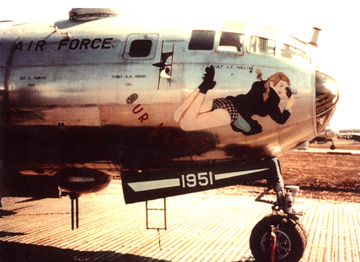 If we are memorializing the Korean War and early Cold War eras in this web site, it seems appropriate to include a display of Combat-Ready nose art. Here we offer viewers, with 91st SRS connections, a chance to share any photos they may have of squadron nose art. Color or black and white is OK. We will try and avoid duplication, unless there is a related story involved. If you have a potential contribution, go to the home page and send us an e-mail. If you send original photos, via snail mail, we will scan them and return the originals to you within a weeks time. If you want to send them over the internet, be sure to size them to no more than six to eight inches, convert them to 72 dpi, and mail them in jpeg format.