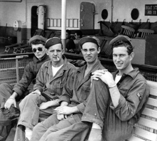 | “Stadille,” commanded the deep voice of my new buddy, Bob Wolfington, just making his way out of the latirne, “let’s get out of here and get some air.” Good idea, I thought, and followed him up the now slimy stairs leading to the deck. Ahh! both of us took deep breaths of the fresh salt air. Paradise, I thought...thou art a sea breeze! We found a bench, commandered it, and before long other guys we knew that had made it topside came and joined us. “Those guys below are barfing their brains out,” one fellow remarked, “why in the hell don’t they get topside and get some fresh air ….the stupid bastards.”